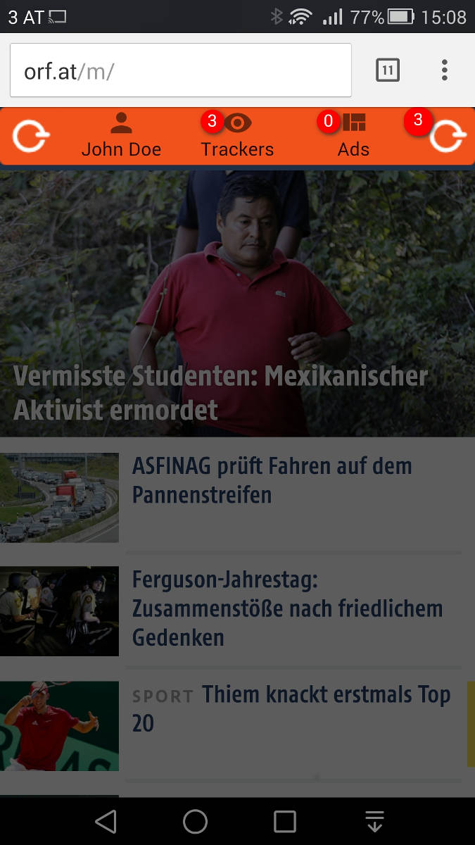 Anonymes Surfen klingt toll, jedoch war ich sehr skeptisch, dass das so einfach funktionieren soll. Bis jetzt musste man dafür Browser uns Betriebssystem konfigurieren und Software am Rechner installieren. All das war nur für Experten und ein normaler Benutzer wäre damit überfordert. eBlocker zeigt, dass es auch sehr viel einfacher geht. Meine Tests zeigen, dass sogar in der noch nicht fertigen Version die Werbung bei HTTP Anfragen gefiltert wird. Das im Browser eingeblendete eBlocker Interface zeigt auch bei jeder Seite wie viele Tracker es gibt. Tracker sind Dienste die Daten vom Benutzer sammeln.